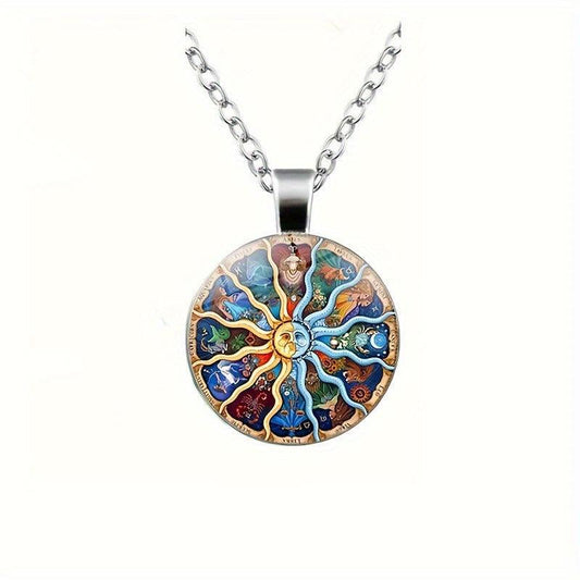 12 Constellations Zodiac Astrology Sun Moon Stars Pendant Necklace
