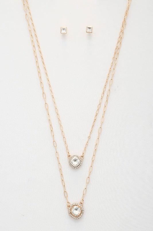 Collar y aretes en capas de metal con doble cristal de 3 piezas